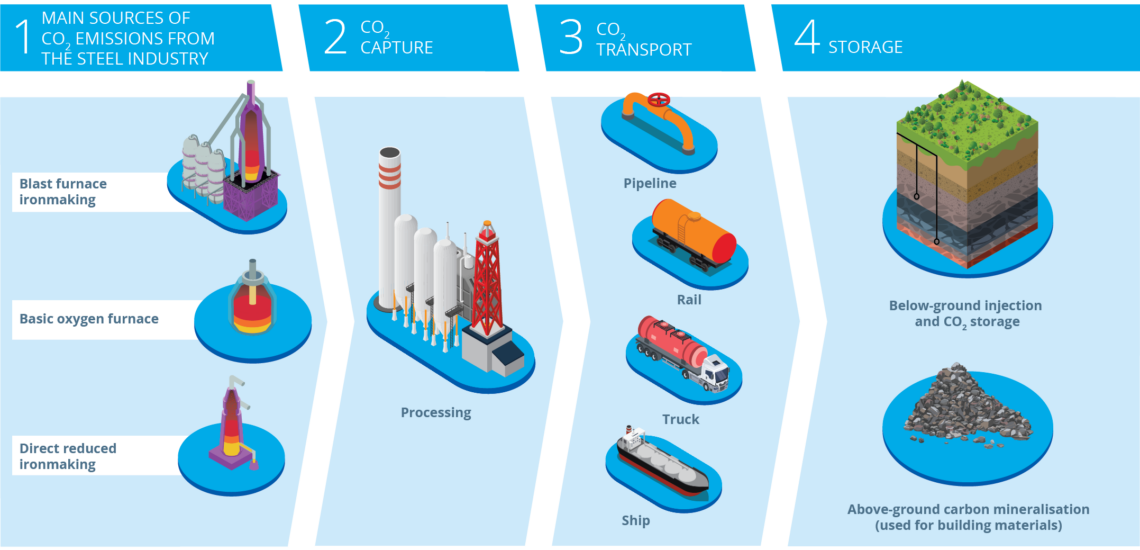 The IEA found that innovative process routes (including CCS on the BF, smelt reduction and gas-based DRI) can be expected to cost 10-50% more than commercially available counterparts within a given regional context, noting this cost increase significantly exceeds profit margins from steelmaking today.