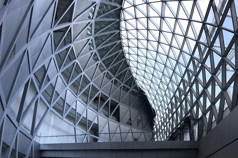 “Each complex node, prismatic steel section and triangular panel is unique and each is produced using the most sophisticated manufacturing technologies.”