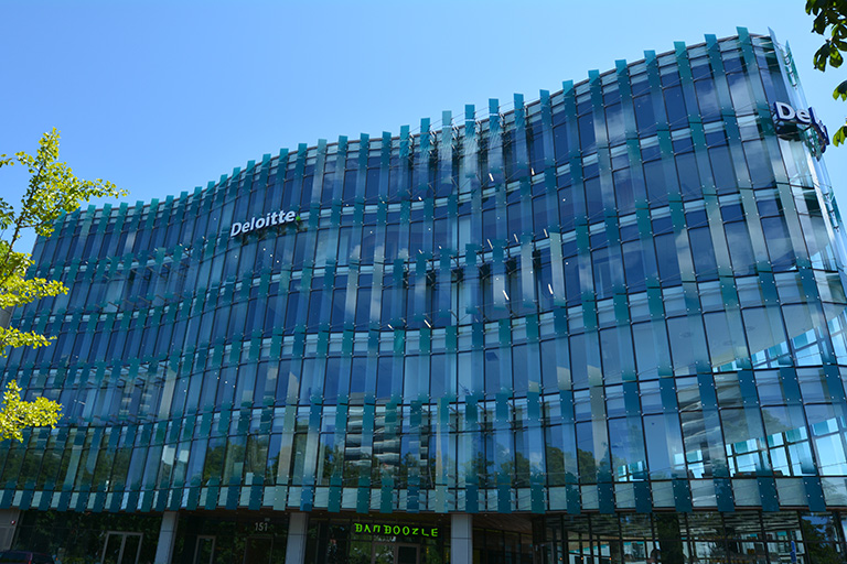 As part of the design, the new Deloitte headquarters building incorporates base-isolated bearings.