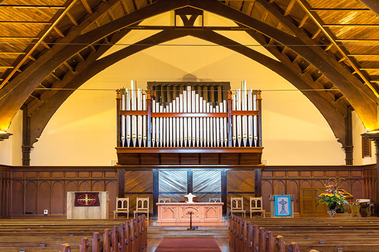 Knox Cathedral was rebuilt with an earthquake-resistant steel cladding structure