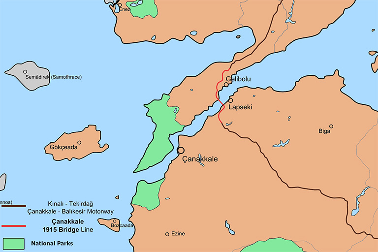 这座大桥将连接达达尼尔半岛和土耳其西北部大陆地区