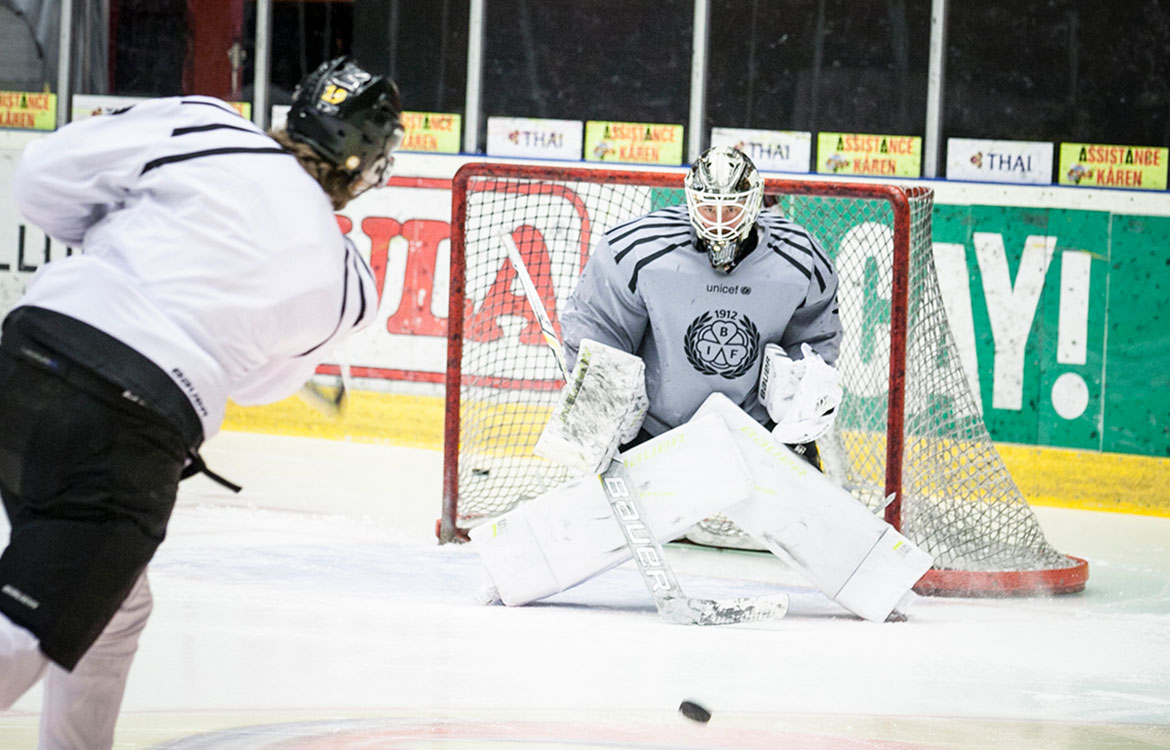 一名Brynäs IF队员在训练守门员