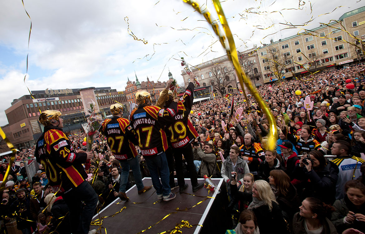 耶夫勒镇与Brynäs IF球员共同庆祝球队获得2011-12年度拉玛特杯