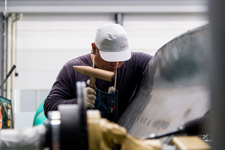 英菲尼迪仍然坚持对部分团队培训传统的钢材打造方式。通过轧制、锤打和成型加工,让钢材达到规定形状。该公司相信,这有助于工人理解他们的工作对象,工人们不是单纯地将钢卷放入巨型压床,而是要理解钢材的性能,以及对于未来汽车设计的意义。