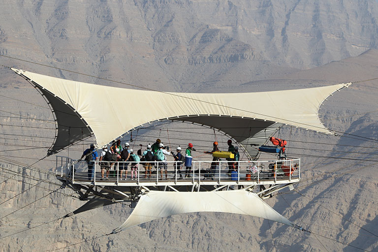 杰贝尔·贾斯山是阿联酋最高的山,杰内尔·贾斯索道距离地面的初始距离达到惊人的1680米。即便是在滑索的最低点,参观者也在海拔400米以上。